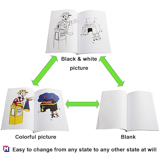 One of the finest tricks in magic. A coloring book is shown to have all blank pages. Suddenly, with a wave of the magicians hand, pictures appear in the book, outlined in black. With audience participation, the magician takes the trick one step further. He colors the pictures - by magic. Now bright, vibrant colors have filled in the black and white pictures! For a fitting finale, all the pages change back to their original state - blank! The Royal Magic Coloring book is the finest on the market. Changes from blank pages to outlined pages to colored drawings are made with the greatest of ease. If you can flip through a book, you can perform this astonishing trick! Buy the best. Buy the original. Buy Royal. Proudly made in the USA by FUN Incorporated.