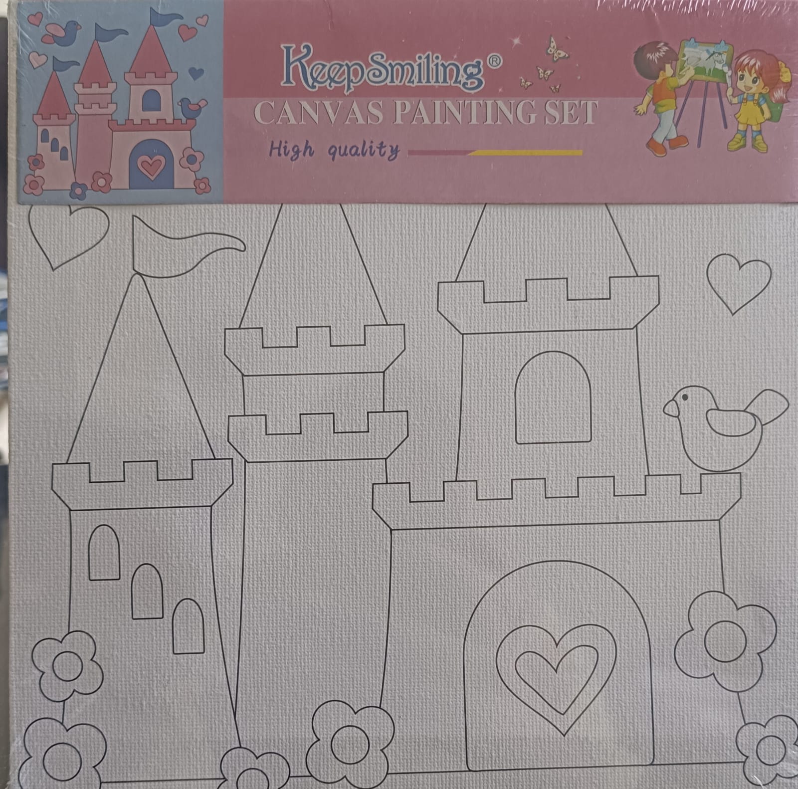 Kids Canvas Kit- 8*8 Canvas Board with Color and Brush- Castle