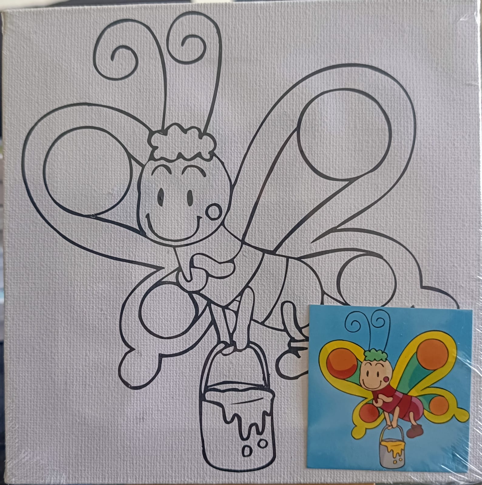 Kids Canvas Kit-6*6-Canvas Board with Color and Brush- Butterfly