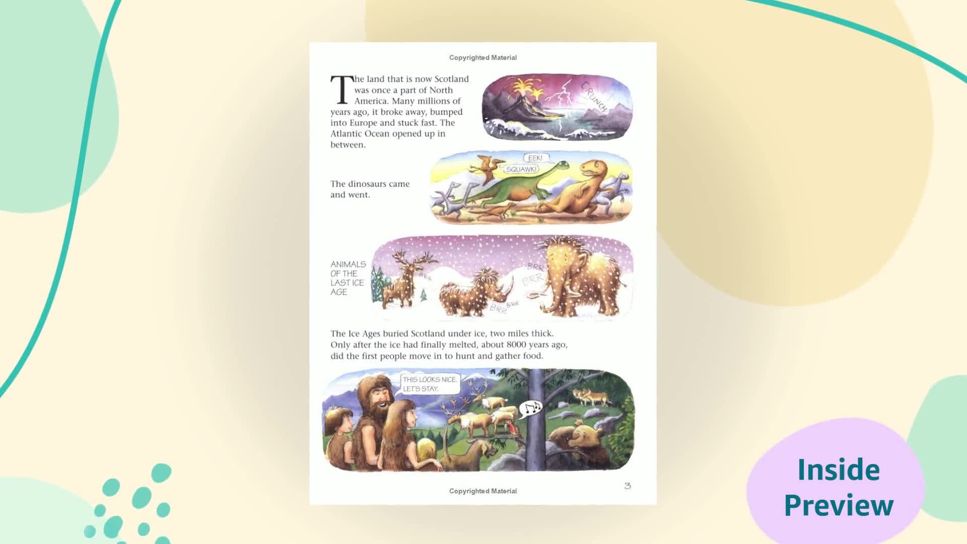 The story of Scotland from the Ice Age to the Vikings, the Picts and the Romans, to Robert the Bruce, Mary Queen of Scots, Bonnie Prince Charlie, Flora Macdonald, Sir Walter Scott, Logie Baird, Keir Hardie and many more famous Scots up to the present day. Each page is packed with colourful pictures and witty captions and speech bubbles, and a pithy text gives the facts and tells the story.This is a fun book, but it covers the material in a way that will make it attractive both to schools and to tourists.